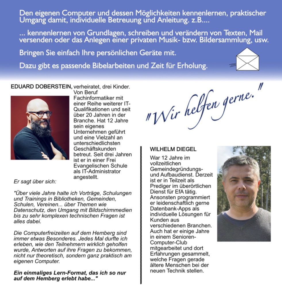 wir freuen uns, dass wir nach einer einjährigen Pause wieder unsere Computer Freizeit anbieten können.